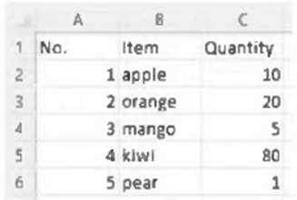 Item Quantity apple 5