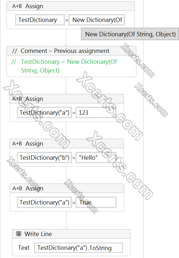 Based on the exhibit, what is the result of the Write Line in the sequence?
