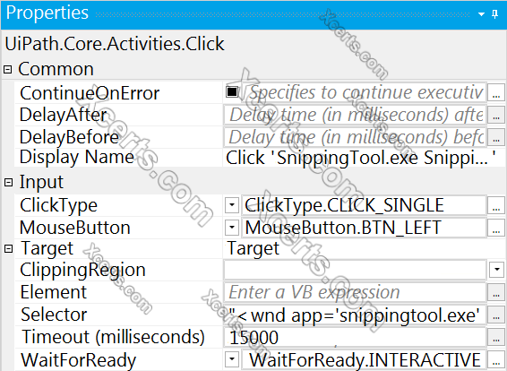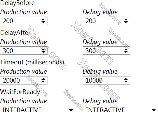 A developer configured the Activity Project Settings for a UI automation and a Click activity in the project shown in the following exhibits: