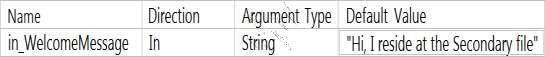 In addition, the following reflects the Arguments panel in SecondaryWorkflow.xaml: