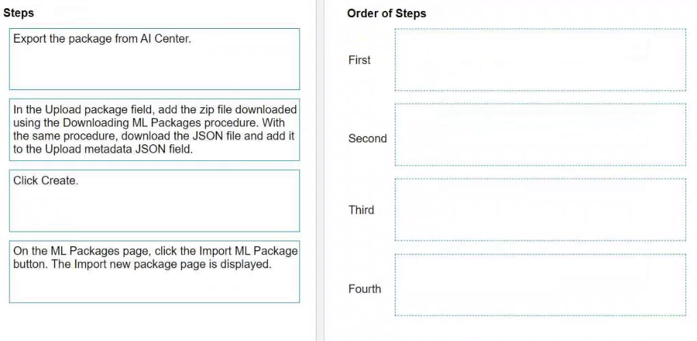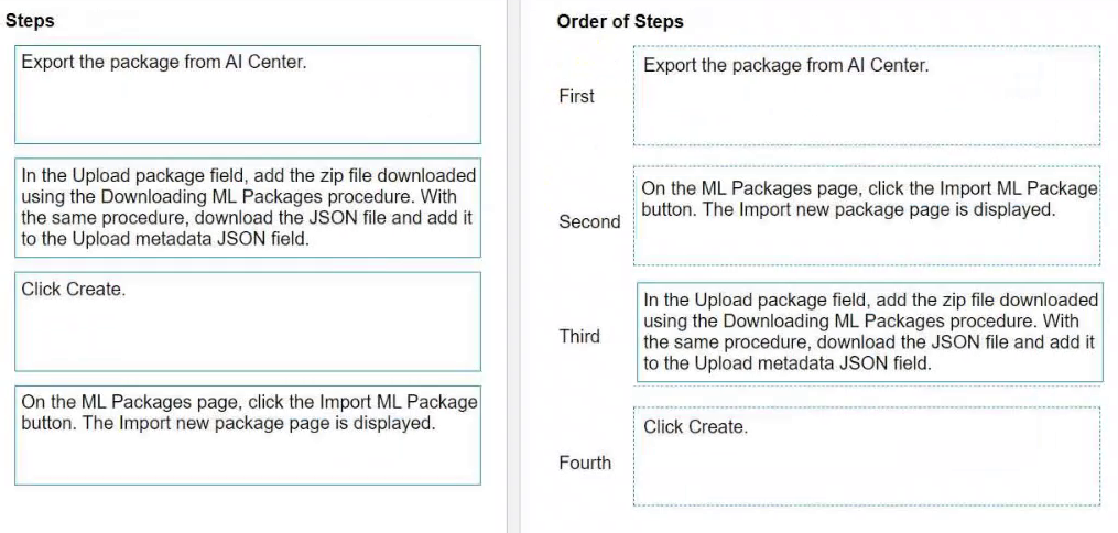 What is the correct order of uploading a package exported from UiPath AI Center?