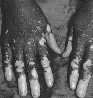 A32-year-old woman is referred to you by her dermatologist for further evaluation. She developed these changes gradually in the last year. Her hands are seen in Figure. What other associated disease is most likely?