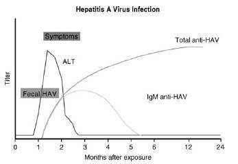 If the patient was found to be HBeAg positive, he would be considered highly infectious for the spread of hepatitis B. Hepatitis Be antigen is the DNA polymerase that shows active replication of the hepatitis B virion. These patients are 100 times more infectious than those lacking the hepatitis Be antigen. The window period is a situation where a patient is just recovering from hepatitis B. Hepatitis Bs antigen is negative and the antibody to hepatitis Bs has not been developed. The diagnosis is made by antibody to hepatitis B core. This is seen in Figure 1-6. Any patient who is hepatitis B surface antigen positive is at risk for delta hepatitis. This patient would be at risk for delta hepatitis by virtue of having a positive hepatitis B surface antigen. There is no level of transaminases, even normal transaminases, which would preclude antiviral therapy. The level of viral production indicated by the hepatitis B quantitative viral load, along with an assessment of the underlying liver pathology, is the best indication of need for treatment. As mentioned earlier, the antibody to hepatitis B would show the patient is less infectious and likely have a lower viral load.