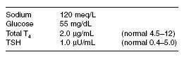 The patient has Sheehan syndrome, necrosis of the pituitary associated with childbirth. She has panhypopituitarism, but the most urgent hormone to replace is hydrocortisone. Thyroid hormone should not be replaced until after glucocorticoids are administered. The hyponatremia will correct with glucocorticoids and saline. The patient is not deficient in mineralocorticoids, as she does not have primary adrenal insufficiency; therefore, fludrocortisone is not indicated.