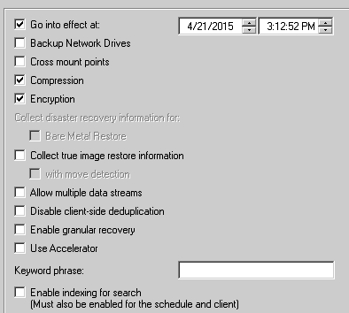 An administrator has a backup policy with the following attributes: