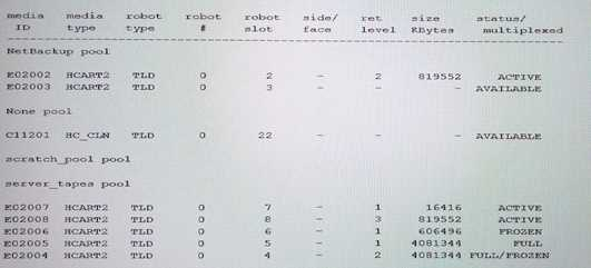 A backup job configured with a retention level of 2 and Policy volume pool set to the server_tapes is failing due to Status Code 96: Unable to allocate media for backup. See the output of the available_media command below: