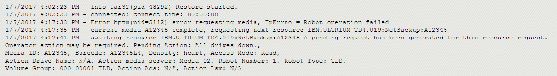 3. NetBackup bptm logs on the media server