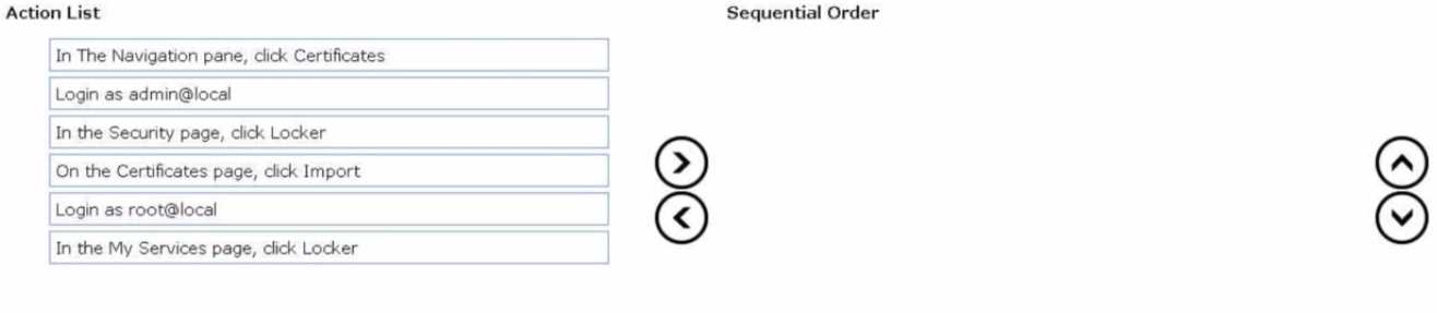 Drag and drop the four correct actions the administrator must complete from the action list on the left and place the actions into the correct sequence on the right. (Choose four.)