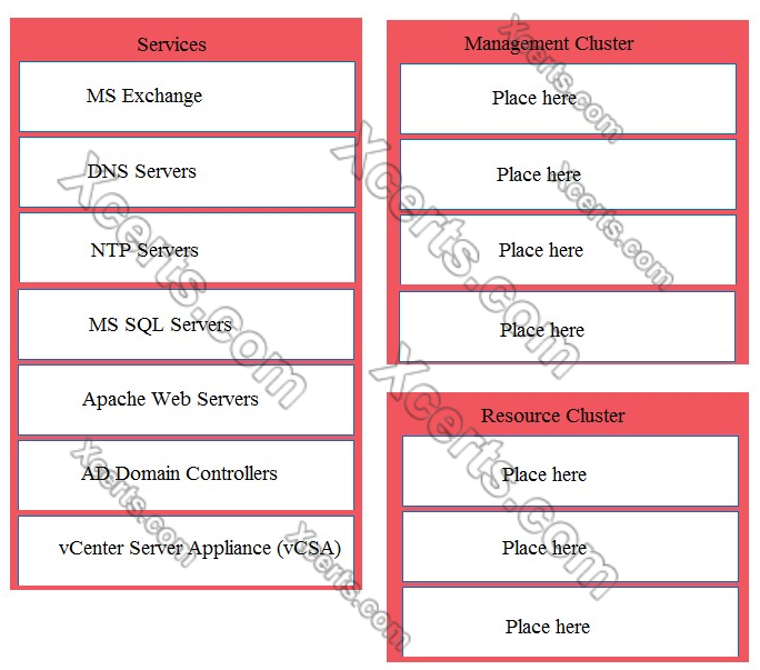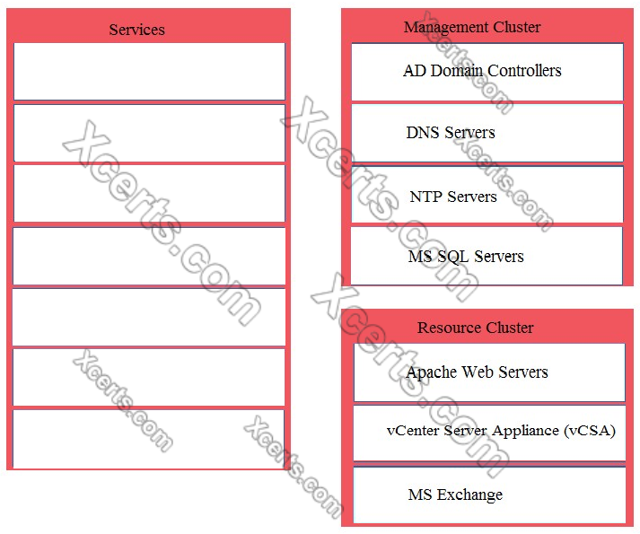 According to VMware-recommended best practices, on which cluster should each of the services be placed?