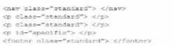 CSS Selectors: The selectors nav, footer, p.standard:nth-of-type(1), and p.standard:nth-of-type(2) are used to target the specific elements. The nth-of-type pseudo-class is used to select the first and second paragraphs.