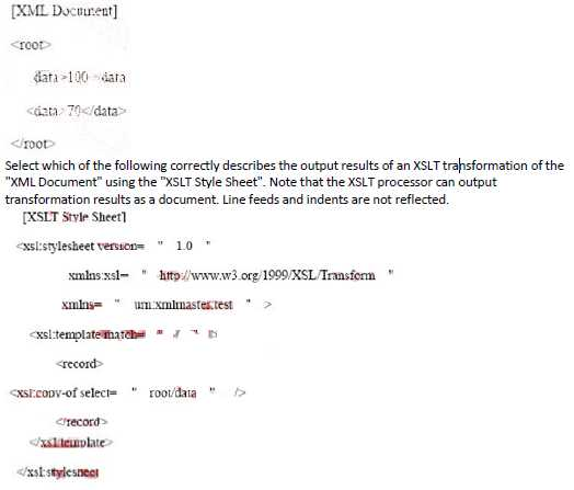 Assume that the "XML Document" is changed to the "Results XML Document." Select which XSLT style sheet correctly performs the transformation. Note that the XSLT processor can output transformation results as a document.
