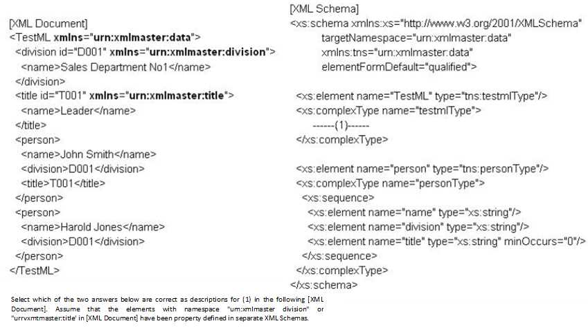 1. <xs:schema xmlns:xs="http://www.w3.org/2001/XMLSchema">