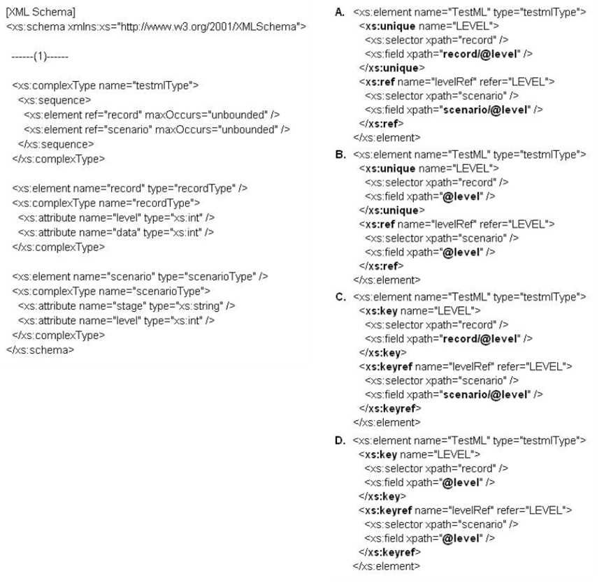 Select which answer correctly belongs in (1) of the [XML Schema] document below.