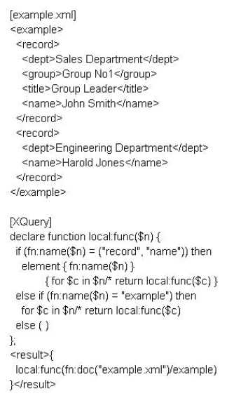 Select the correct result of executing the [XQuery] on [example xml] referenced in a separate window.